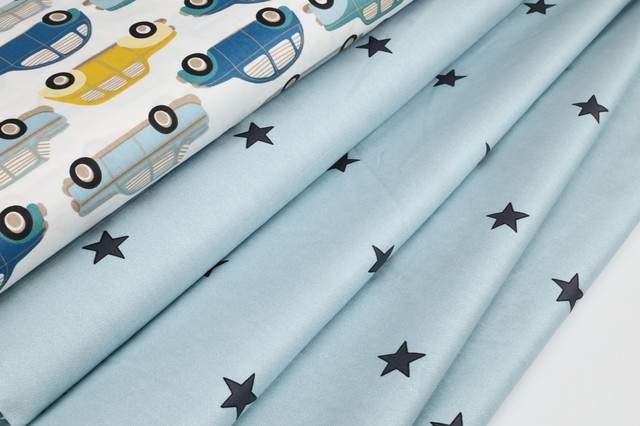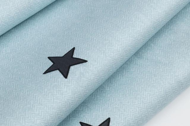 Сатин-твіл Зірочки 10 мм на пильно-блакитних зигзагах