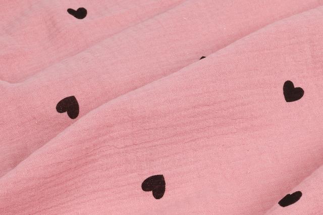 Муслін жатка Сердечка чорні на темно-рожевому 135 см