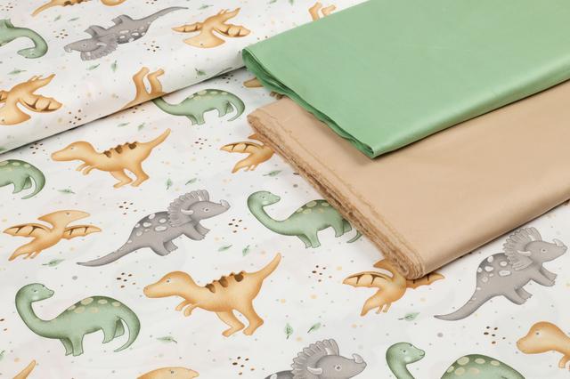 Сатин-твіл Динозаврики сірі, гірчичні, зелені