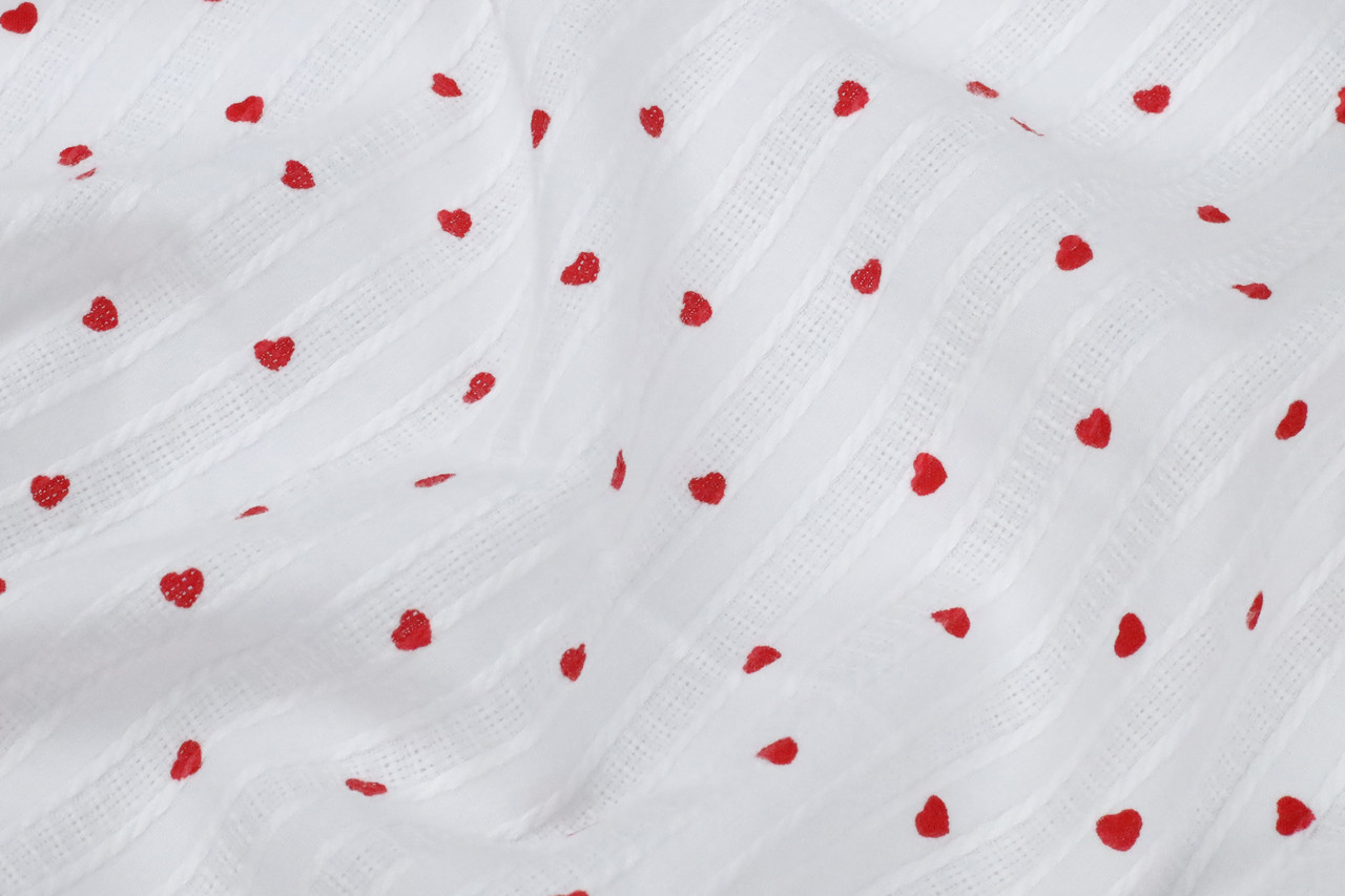 Легка, дихаюча тканина з натуральних волокон бавовни. Структура лицьової сторони тканини - рельєфна (об'ємні цяточки), тому вироби з неї виглядають цікаво й привабливо. Батист - одна з найкращих тканин для спекотної пори!