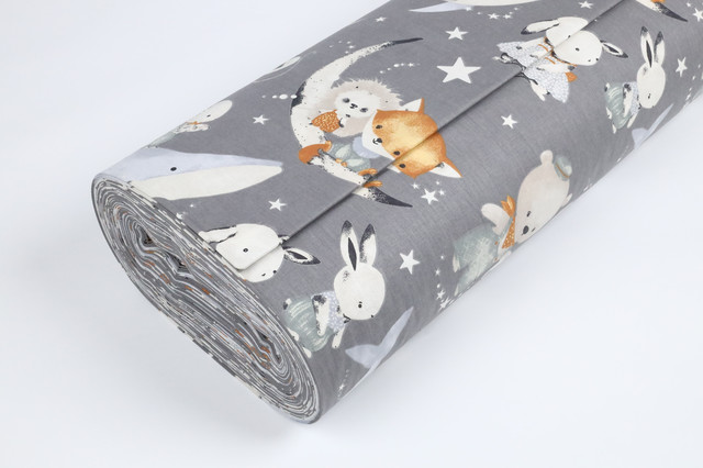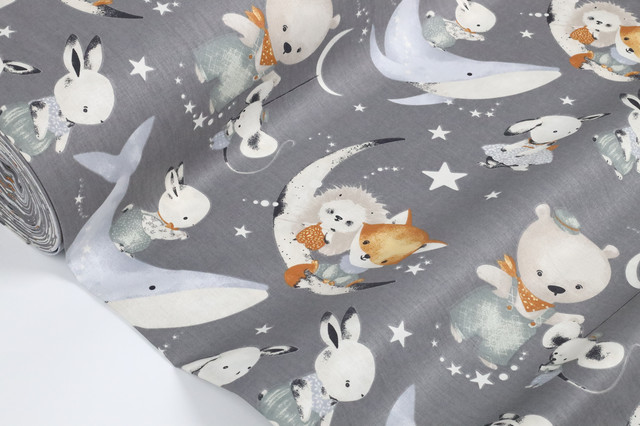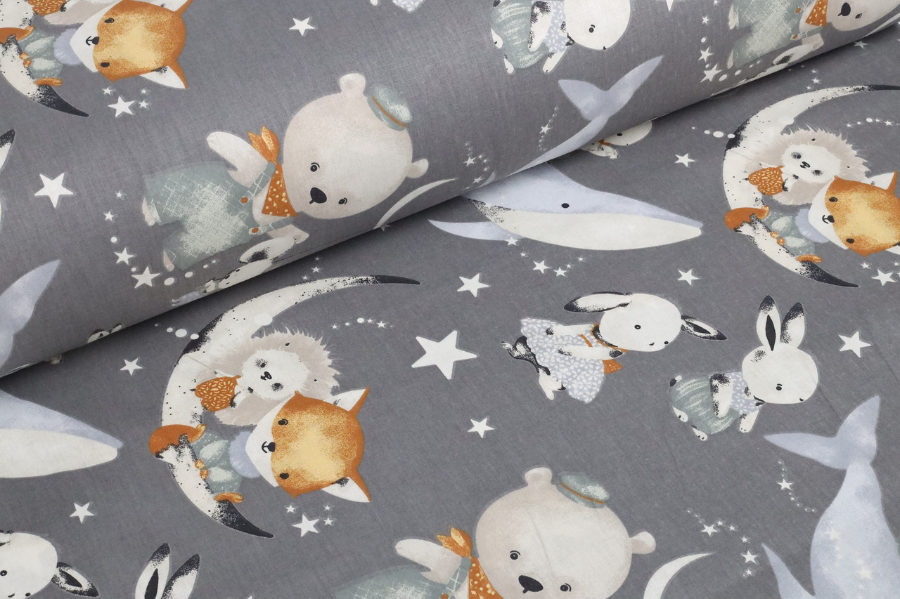 Ранфорс Кити, звірята, зоряне небо ГРАФІТ, ширина 240 см