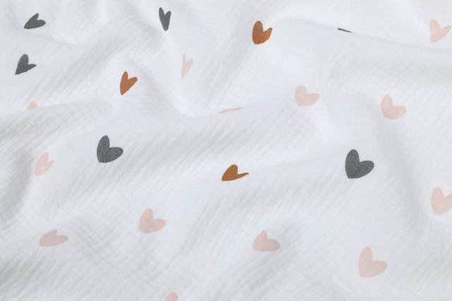 Муслін жатка Серця пудрові, карамельні, графітові 135 см