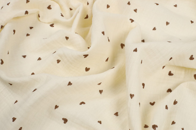 Муслін жатка Коричневі сердечка різного розміру на айворі 135 см